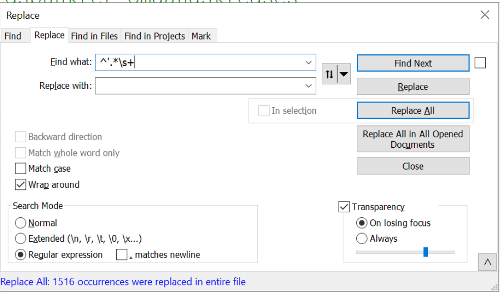 I will go ahead and remove the comments with a regex of ^'.*\s+.
