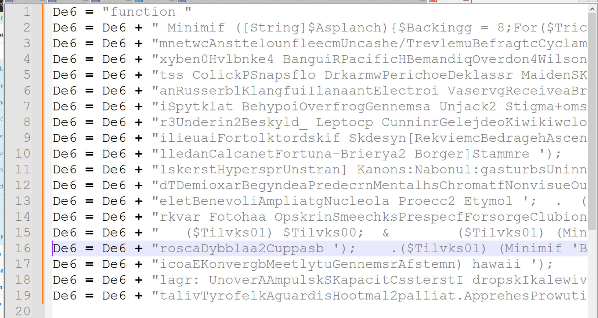 By temporarily disabling Word Wrapping, you can obtain a clearer overview of the obfuscated Powershell script.