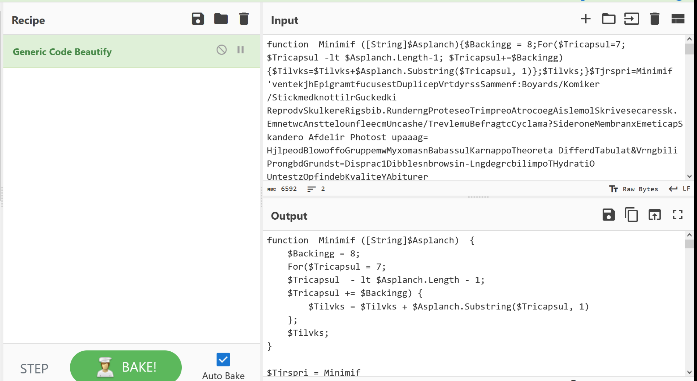 Note that Generic Beautifier has a tendency to break PowerShell scripts, but this is fine since we don't intend on executing it.