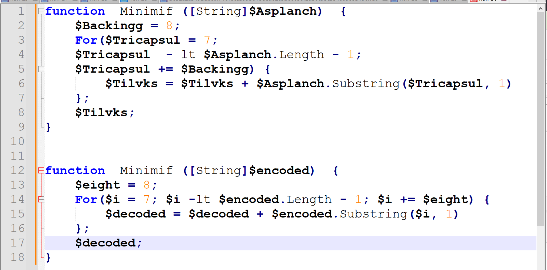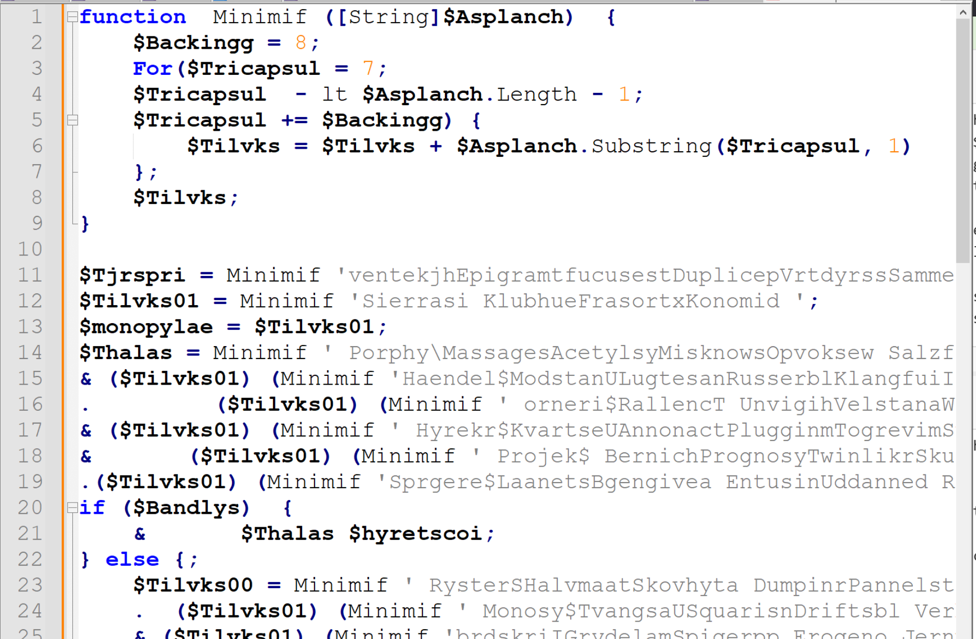 We can see that the resulting PowerShell begins with a Minimif function, followed by lots of calls to Minimif and some more encoded values.
