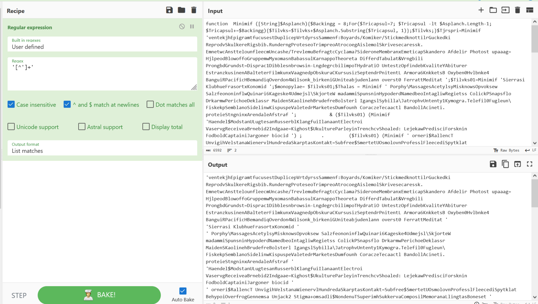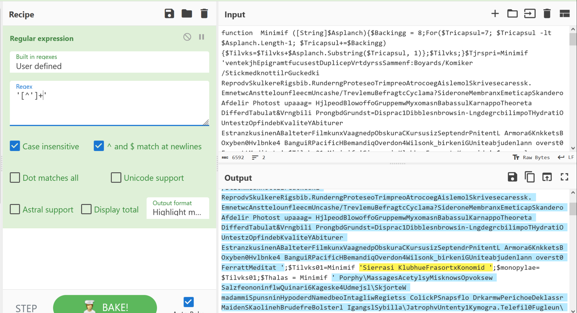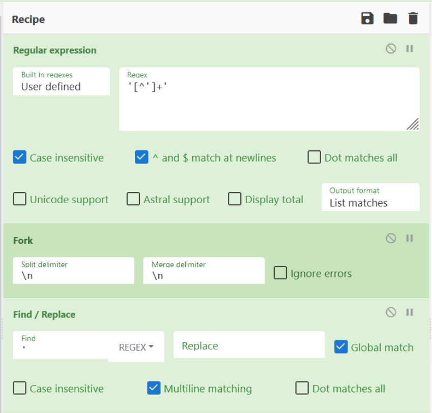 With the output looking as expected, we can go ahead and apply our previous regex to the CyberChef Recipe.