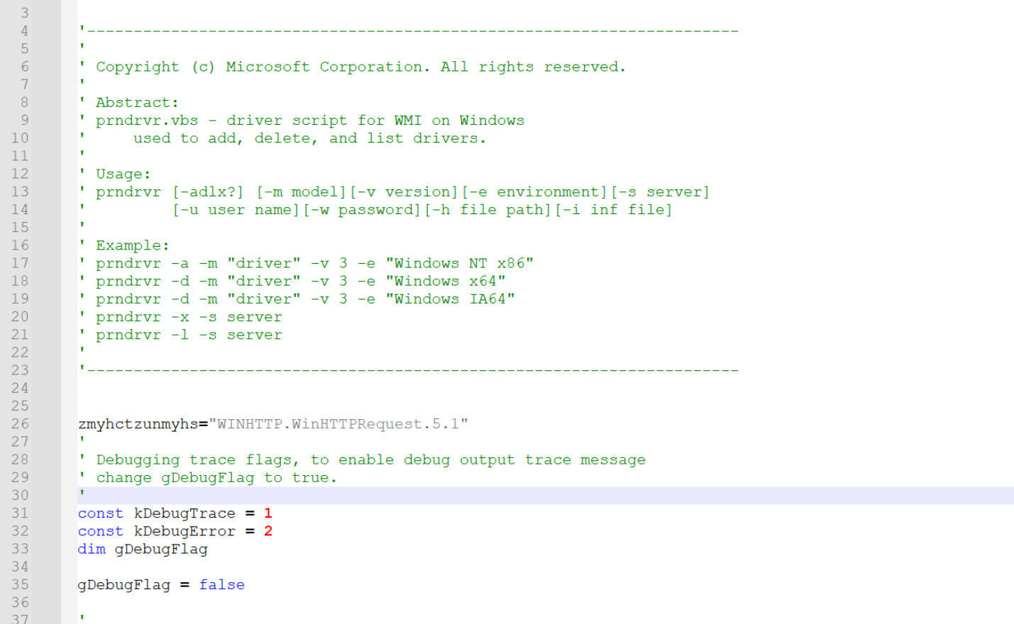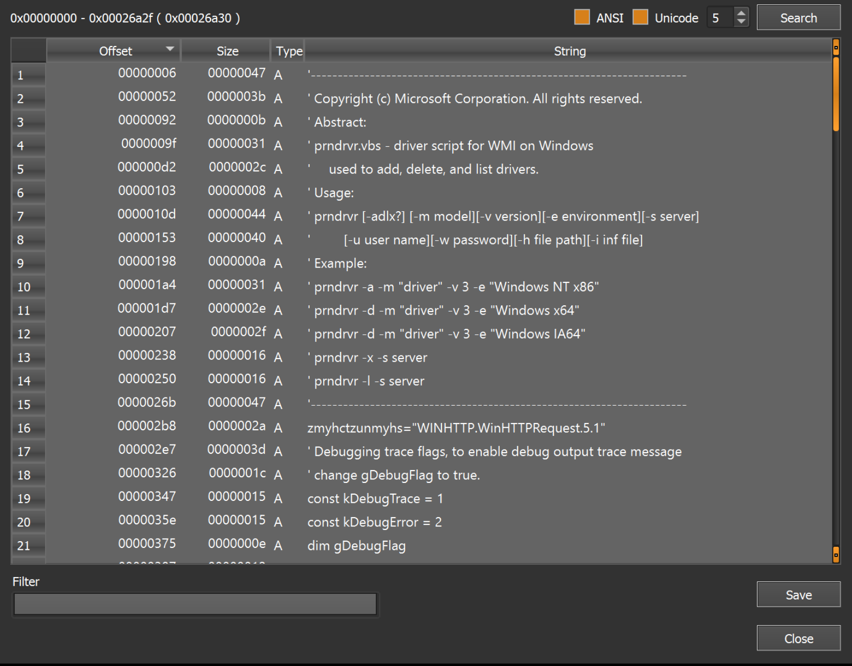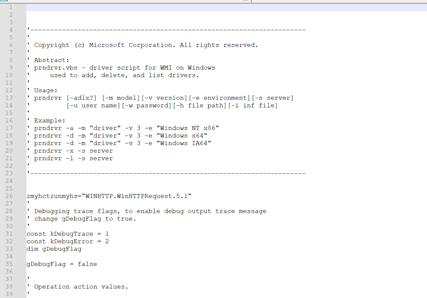 An initial review of the strings shows some comments suggesting that the file is related to a legitimate windows driver script.