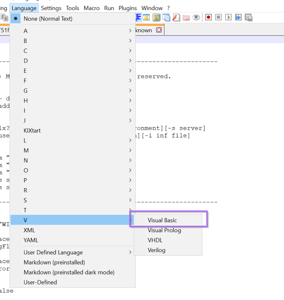After enabling text highlighting, the script now looks significantly better. We can clearly see which lines are comments and which lines contain code.