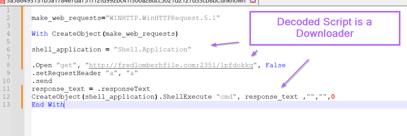 The script is now cleaned up and significantly easier to read. We have removed basic forms of obfuscation used to throw off analysis, and have reduced the script from 191 lines down to only 13.