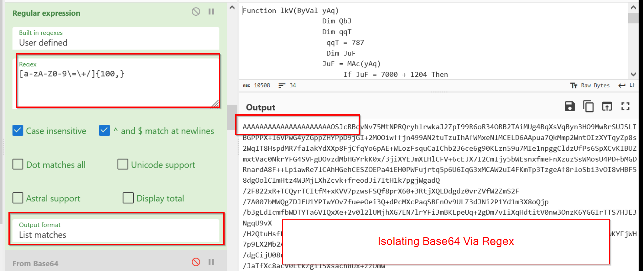 - Use Regex to extract the Base64 blob