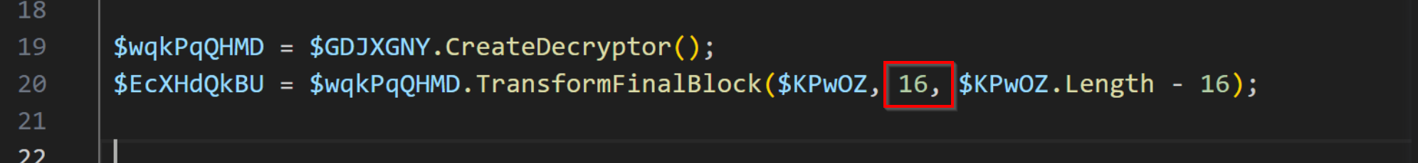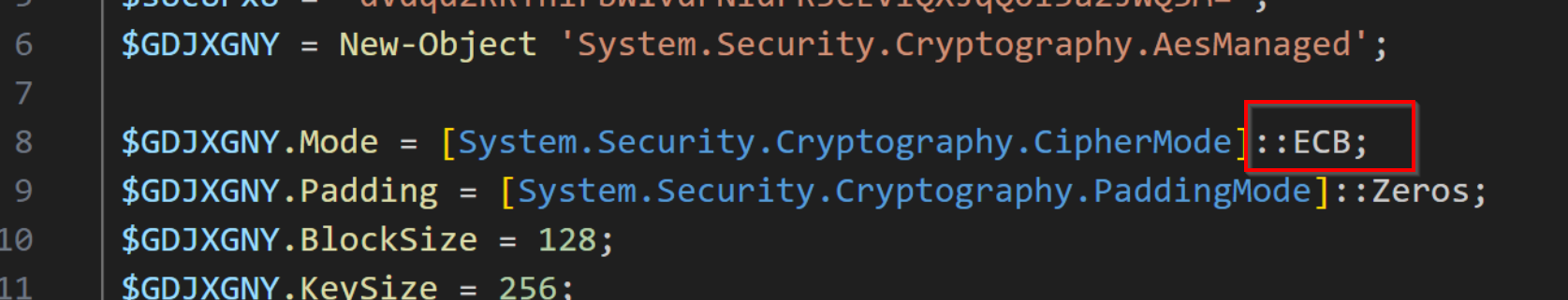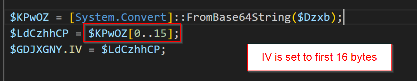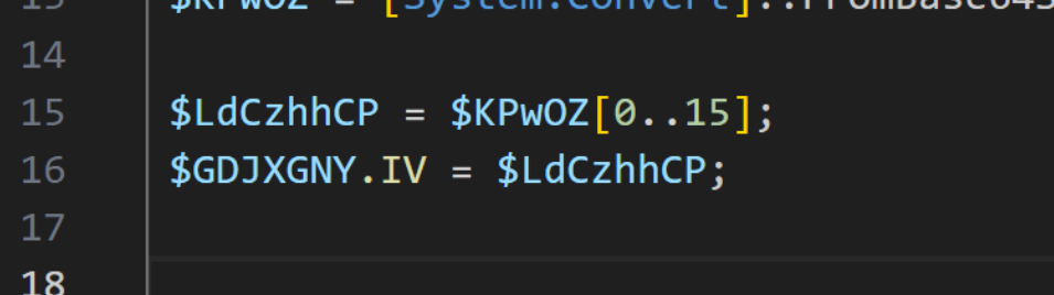 Below we have a Powershell script utilising AES decryption.