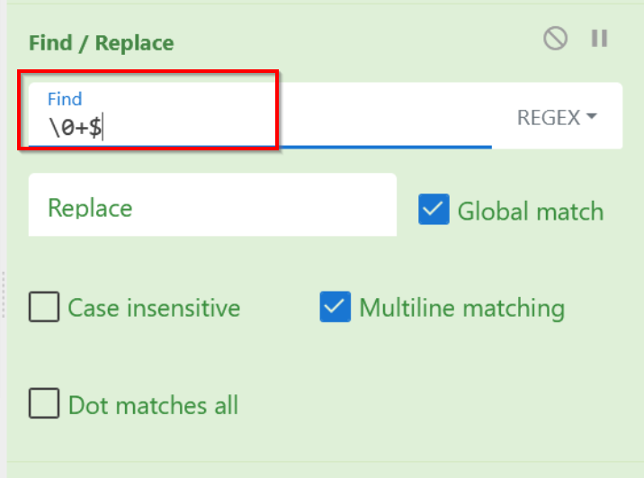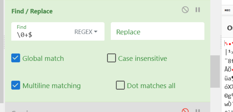 We will leave the "Replace" value empty as we want to remove the trailing null bytes.