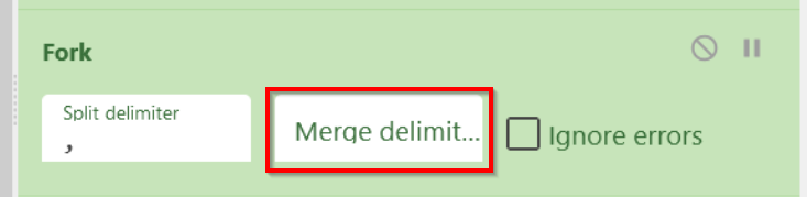 Hence, we will undo our forking operation by applying a Merge Operation and modifying the "Merge Delimiter" of our previous fork to an empty space.