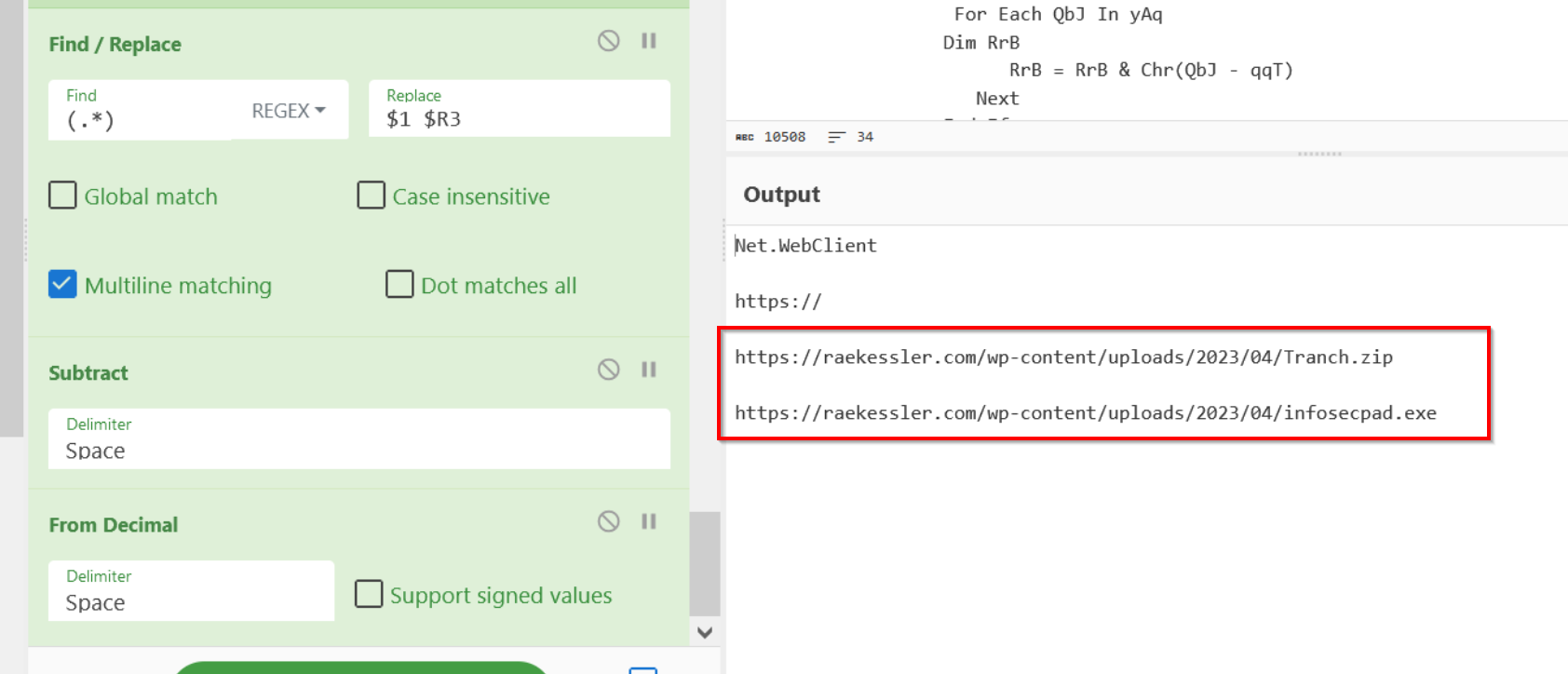 Regular expressions are frustrating, tedious and difficult to learn. But they are extremely powerful and you should absolutely learn them in order to improve your Cyberchef and malware analysis capability.