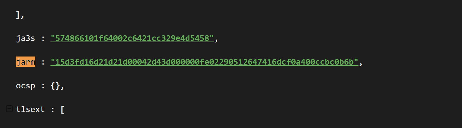 It's possible that the Jarm/ja3 fingerprints could be combined with other fields to produce a better result, but we decided not to pursue this route when 9 Million results were returned.