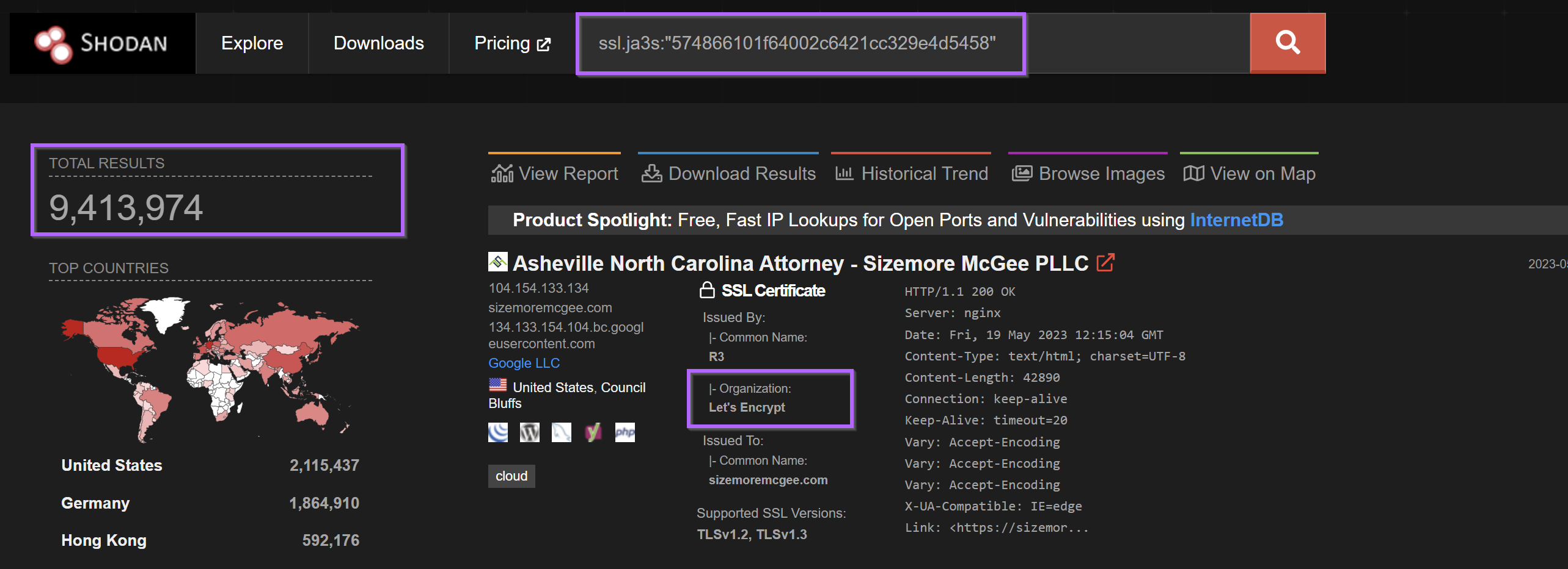 Pivoting from the ja3 came to a similar conclusion with over nine million results returned.