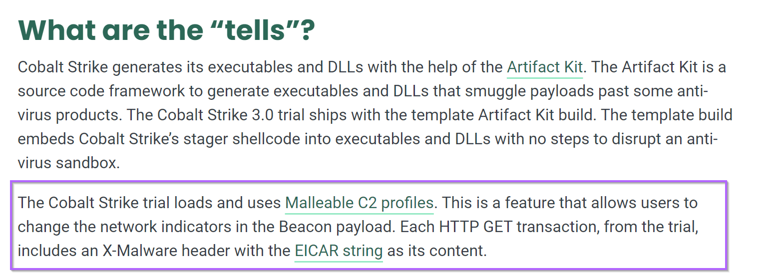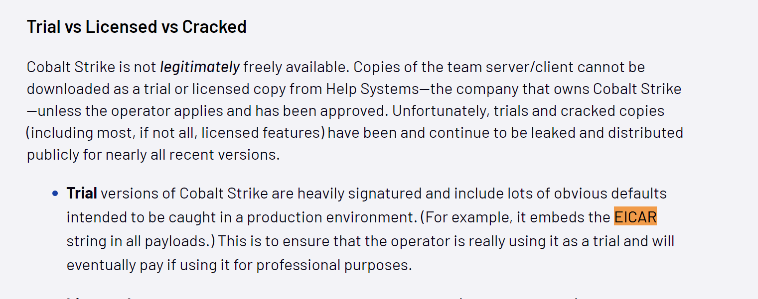 According to Mandiant and Fortra (authors of Cobalt Strike), this is an intentional string designed to prevent abuse of the Trial Edition of Cobalt Strike.