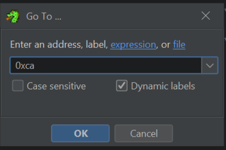 If we go back to Ghidra and press G to search, we can jump to the location 0xCA and observe the hash value.