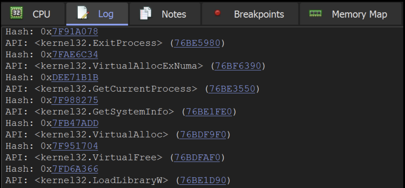 Resolving API Hashes Using a Debugger (x32dbg)