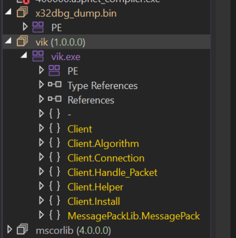 Saving this region to a file x32dbg_dump.bin, we will run into the same issue as the previous method when opening in DnSpy.