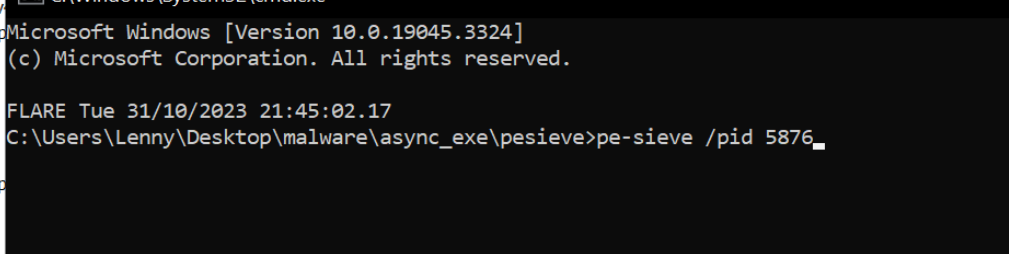 To pass the parameter, we can run the command pe-sieve /pid 5876