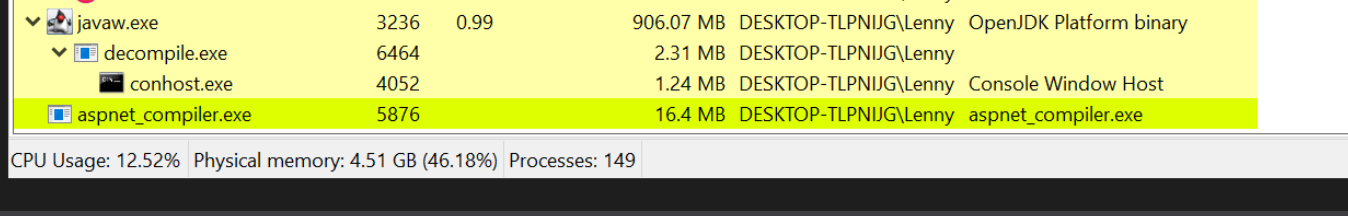 This enabled us to view all loaded modules and open the aspnet_compiler.exe file from memory.